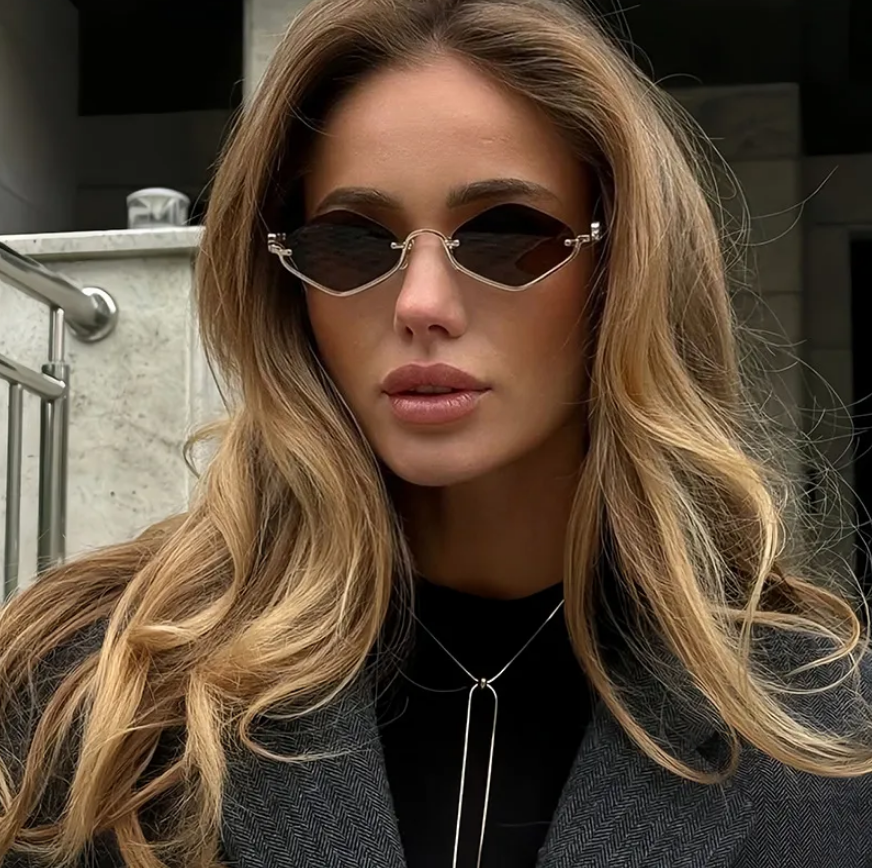 / Dark Cat Eye Sunglasses with Gold Metal Frame