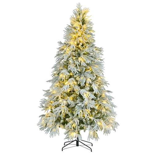 - Winter Wonderland Feel: This 7.5ft tall pre-lit artificial Christmas tree has 1389 rich branches with two different snow leaves and a charming snow flocked design that will transform your home into a winter wonderland.
