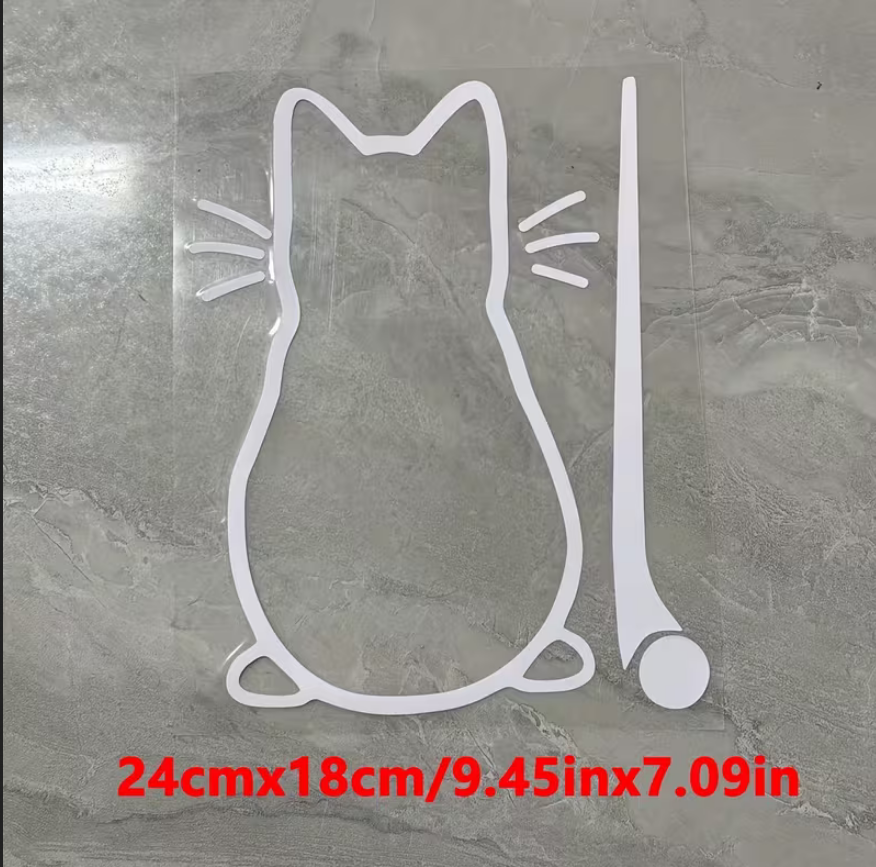 Self adhesive vinyl sticker set – includes 3 pieces:Â 1) main cat body 2) whiskers 3) tail portion affixes to the wiper.