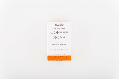 The Fivesso Cinnamon Coffee soap bars are all made with natural and organic ingredients. The organic soap bars are handcrafted in large batches and cured in wooden curing racks to rest for 6 to 8 weeks before being certified safe to use. We take proper care making sure that each soap bar reaches our premium standards before putting into the recycled Fivesso boxes so that each soap bar is personally inspected before packaging. All of our coffee soaps are handcrafted and packaged in the USA. Bar is 3.65oz.